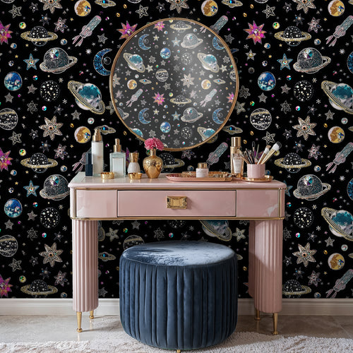 Dark Galaxy Peel and Stick Wallpaper, Space Theme Wallpaper for Kids Room, Constellation Wall Mural, Stars and Celestial Sky Wallpaper